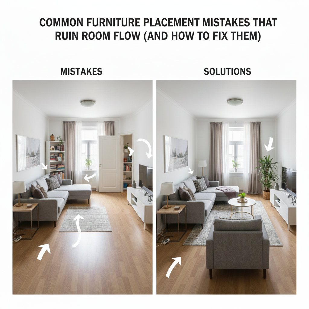 Room flow is not about following design rules. It’s about how the room feels when you live in it every day. If walking feels awkward, if conversations feel forced, if the room feels cluttered even after cleaning, chances are furniture placement is the issue.